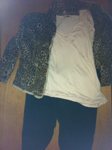 Svarta brallor, ljusbeige t-shirt och en väldigt gammal kavaj från MByM.