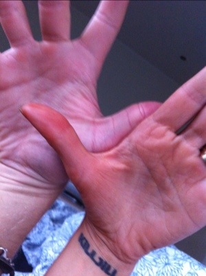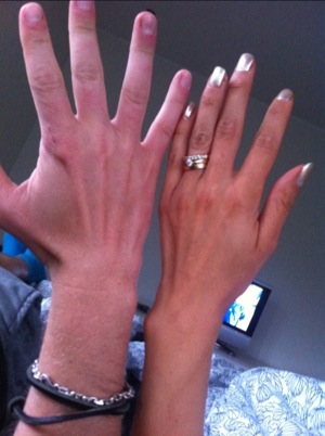 Syrran och jag har haft en liten Solspraysession i duschen idag.