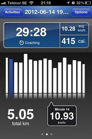 Satte in så att coachen i Runkeepern snackade ofta. Varje gång hon pratade och varje gång det kom en ny låt på Spotifyn så blåste jag ut allt jag hade. Gick superbra!
