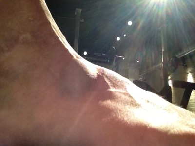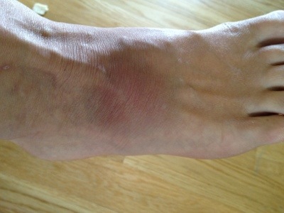 Foten 15 jul 2012 av Jill Idag känns den mycket bättre. Blodet har liksom fått plats under huden och brett ut sig istället för att puta ut som igår.
