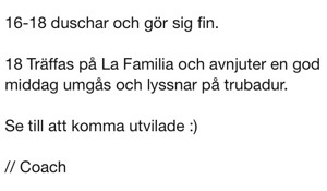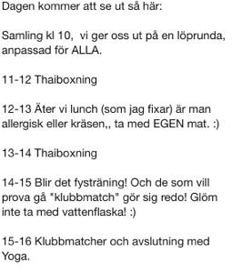 Fick precis lördagens schema. Åhh det skall bli så kul!!!