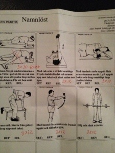 En övning kunde jag inte göra med någon vikt alls så ond är den där axeln.