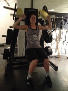 Axelpress… Här dog mobilen och mina armar. Gjorde några andra maskiner oxå. Nästa gång, måndag tror jag, så blir det marklyft och benböj. Jag kan böja benet helt nu om jag inte gör det för ofta.