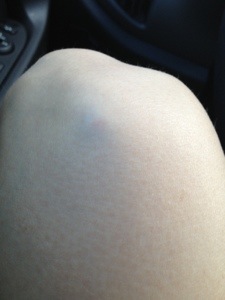 Ser inte mkt ut för världen. Men jag kan numera titulera mig som JiLL tre benbitar lösa i knät Gustafson. Inte illa!