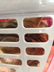 Svennis är halt. Sitter och väntar på röntgen. Han sover i sin lilla kattbur. Stackars Sven!