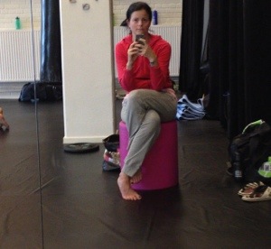 Ser ni så knasigt jag sitter med benen? Så sitter jag jämt. Ett extra varv. Väldigt behagligt.