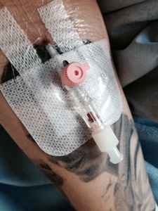 Hela armen värker och jag ringer på klockan. Sköterskan kan inte ge mig något som läkaren inte ordinerat. Trots att jag har med mig alla papper från Spenshult osv.