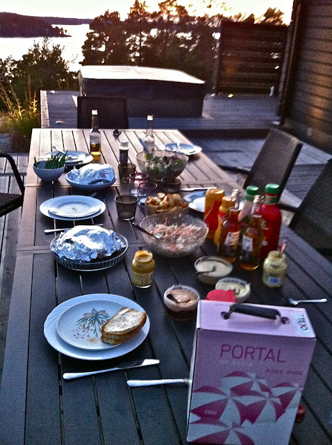 Åkte ut i onsdags förmiddag med Allen´s båt och på vägen så stannade vi för en god lunch på J ”Gåshaga” där vi tog in lammfärsspett med bulgur och yoghurt…mmmm =)