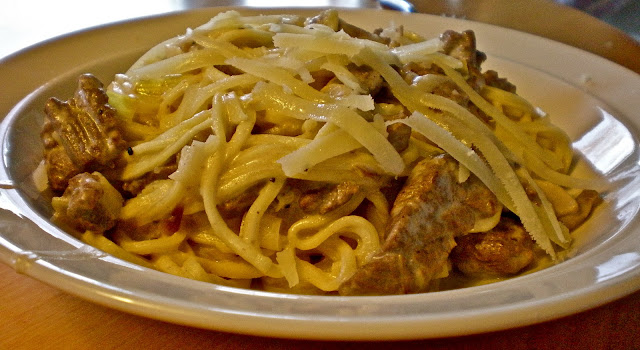 Till middag igår lagade jag en got oxfilé pasta med champinjoner m.m. och nybakat gott bröd till.