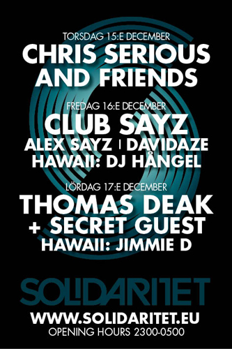 Han har varit hos oss en längre tid och har aldrig gjort någon besviken. Han sätt att mixa skön tech med pumpande house gör att han fyller dansgolven kväll efter kväll och nu på torsdag är inget undantag. Med sig har han 2 tomtenissar som skall backa upp honom… Vilka det är?! Kom förbi så får ni se.
