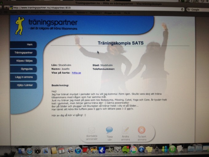 Hittade denna sida, så hopp finns ju 🙂 Traningspartner.nu, jättebra sida om det nu fungerar! Får se om jag får nåt svar…