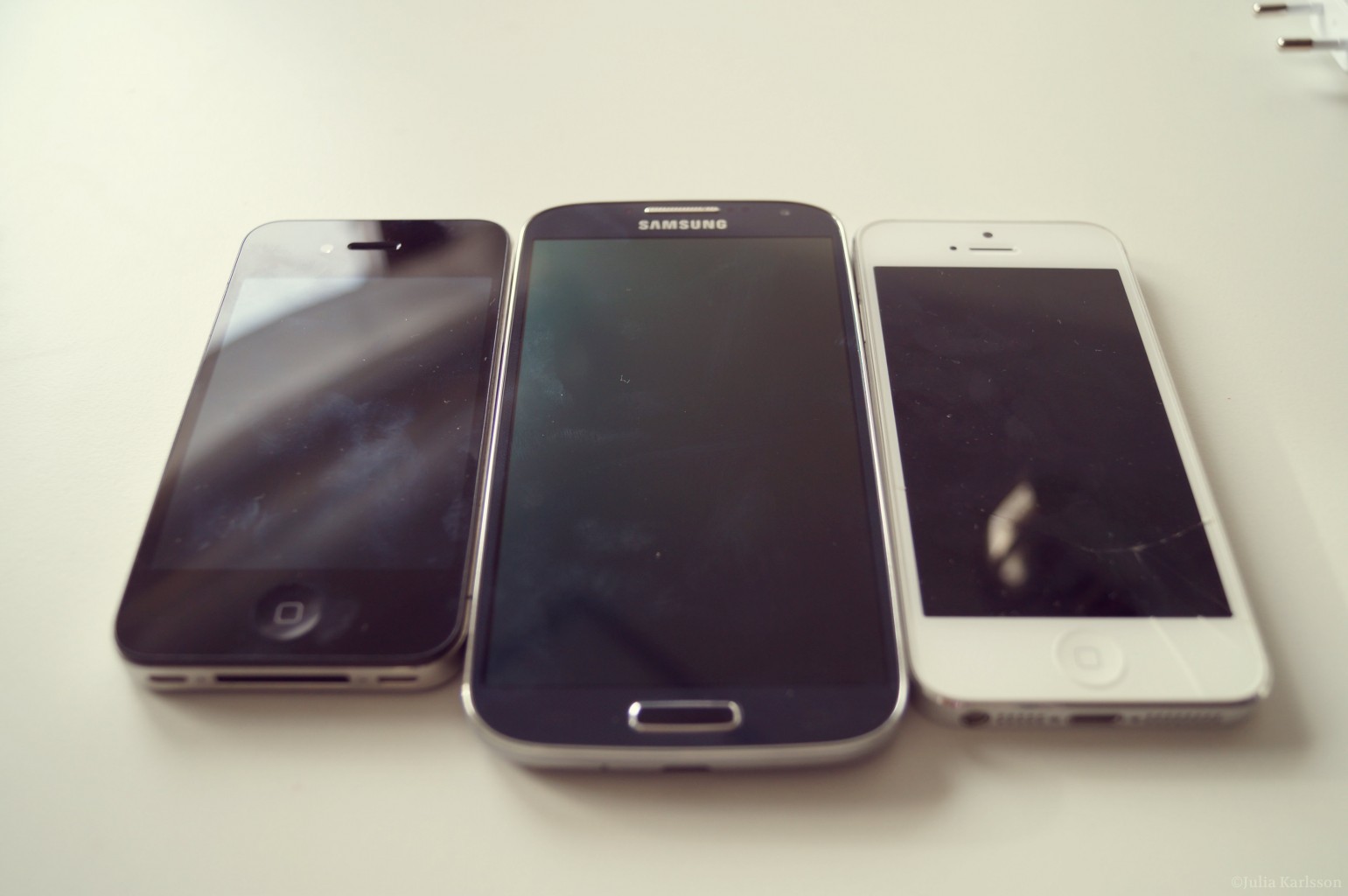 Har fått en del frågor om mitt mobilbytande så jag tänkte förklara det nu. För ca ett år sen skaffade jag en vit iPhone 5 (inte den på bilden) men låsknappen och volymknapparna funkade inte alltid så jag skickade den på lagning (i februari tror jag) och fick en helt ny (den ni ser på bilden). I början var jag sjukt nöjd men sen började även den strula och den gav mig stötar när jag pratade i telefon, hemknappen funkade inte alltid, SIRI var oerhört social (speciellt på lektionerna) och den stängde av sig själv. Så jag gick tillbaka till min iPhone 4 (som jag skaffade när den kommit ut hösten 2010) och den har funkat bra utan problem. När jag bytte tillbaka till den så var det redan planerat att jag skulle skaffa en ny till hösten men jag tänkte inte så mycket på det. Sen började även den strula. Alla sms och samtal gick inte fram och ibland stängde den av sig själv. Så när jag och papi åkte till Elgiganten förra lördagen så köpte han S4:an åt mig (det var den jag planerade att skaffa). Jag hade ingen aning om att han skulle köpa den så jag vart ganska chockad när han frågade om vi skulle köpa den. Men jag är jättenöjd och kommer inte byta mobil på ett par år nu:)