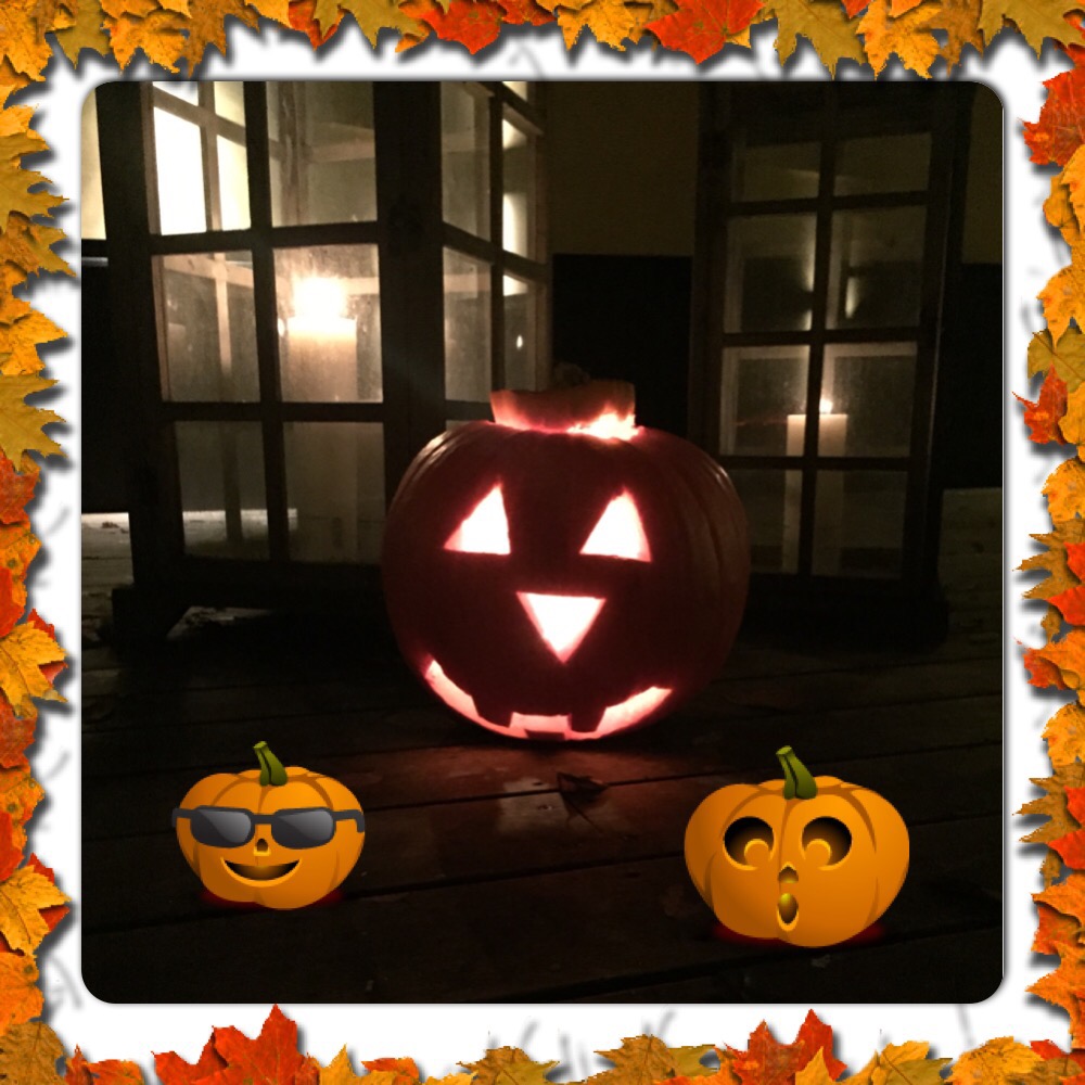 Så här blev min ena pumpagubbe, kan faktiskt säga att jag är nöjd, den fick hela uteplatsen att ”lysa upp” även mina grannar tyckte den va jätte fin och ihelgen ska barnen här i huset och få göra och sätta ut, så himla kul 🙂