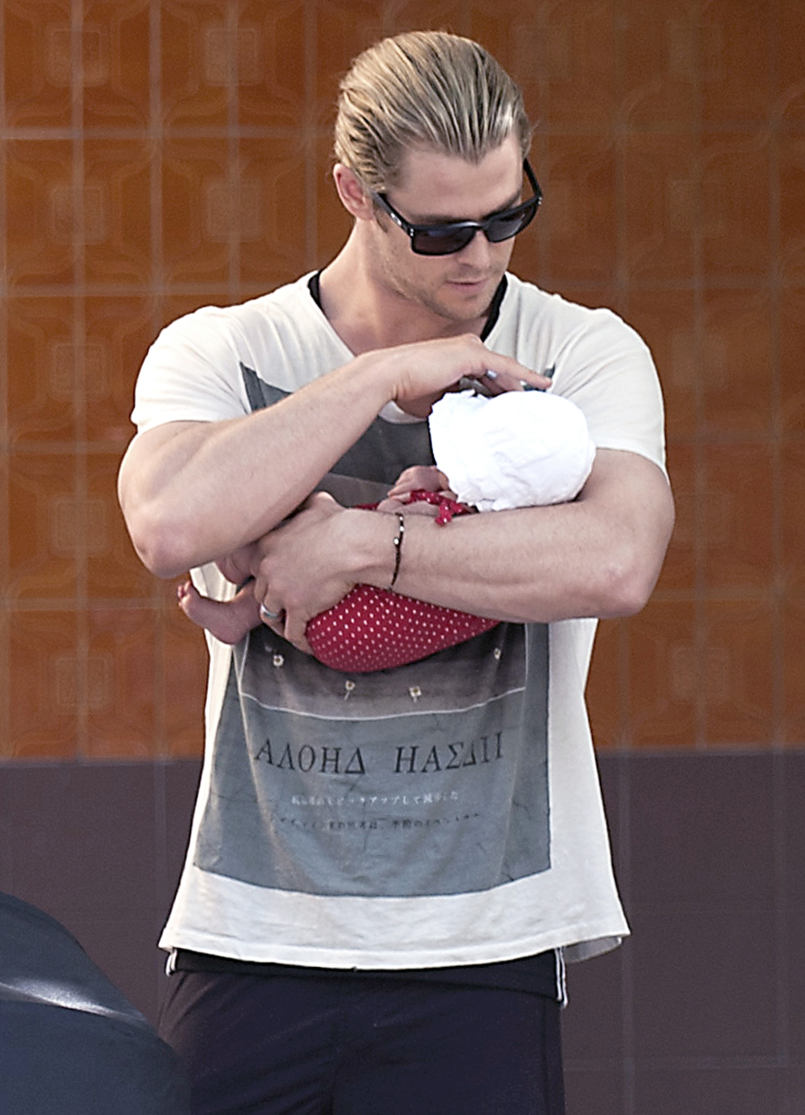 Chris Hemsworth, som spelar Thor i filmen med samma namn samt i The Avengers, har precis blivit pappa. Här syns han med dottern India Rose i armarna.