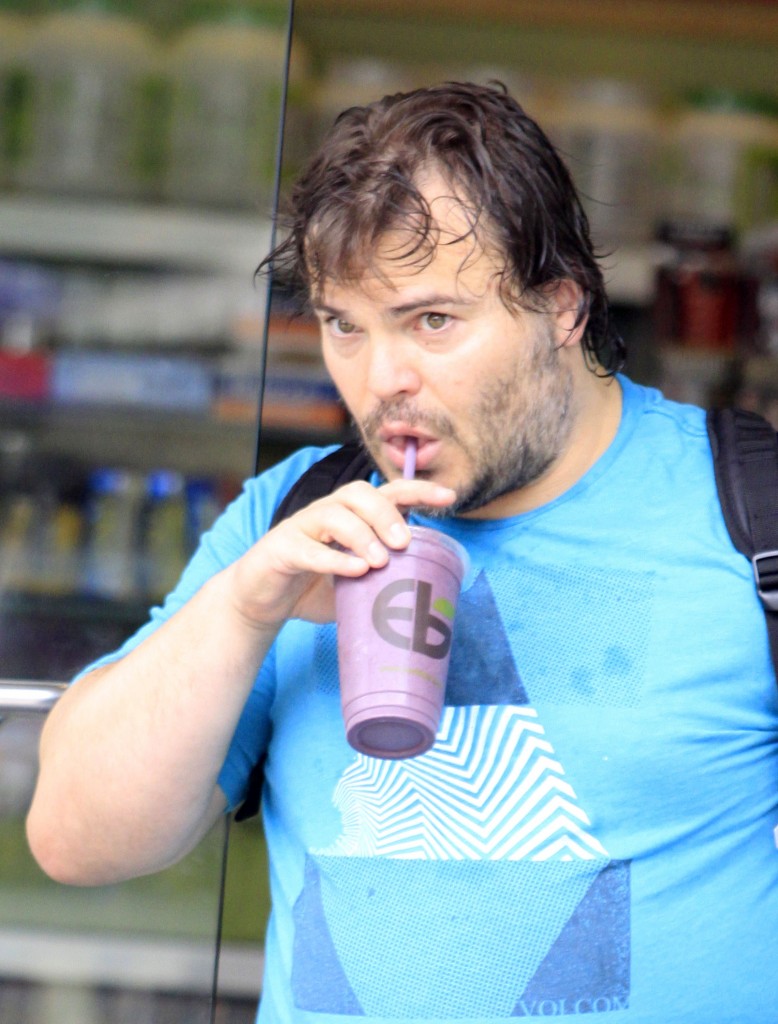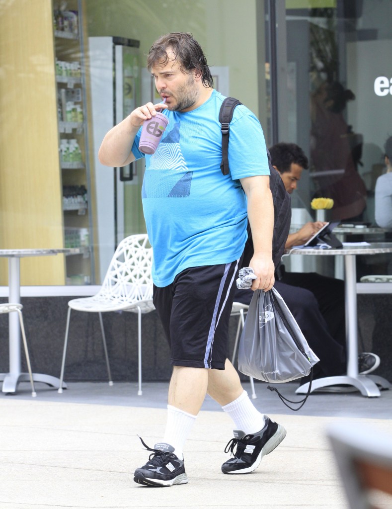Skådespelaren och musikern Jack Black må vara lite större till växten, men det innebär inte att han är lat. Här är han på väg ut från gymmet, och det ser ut som han har kämpat riktigt hårt!