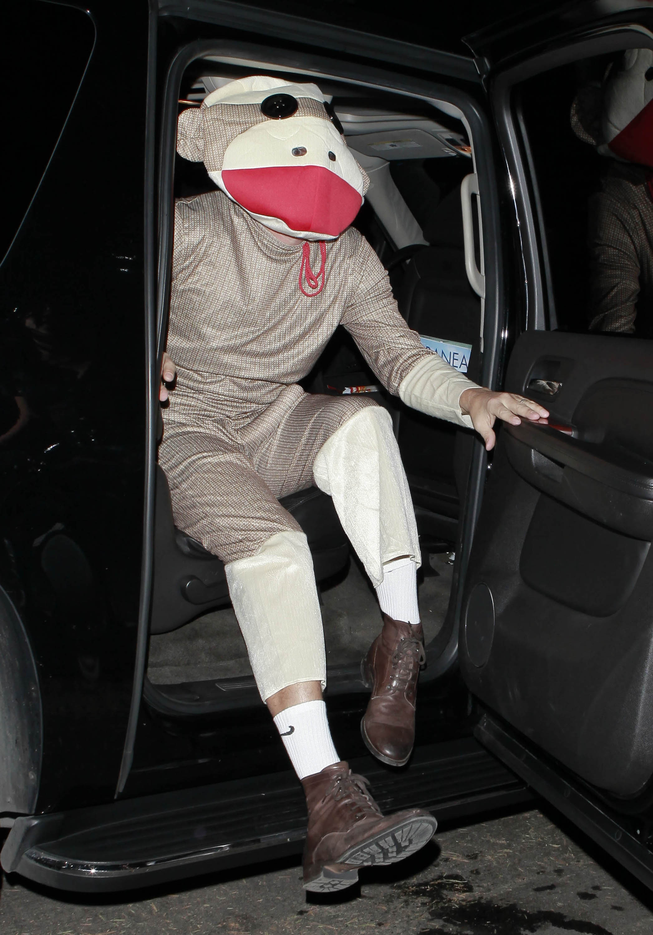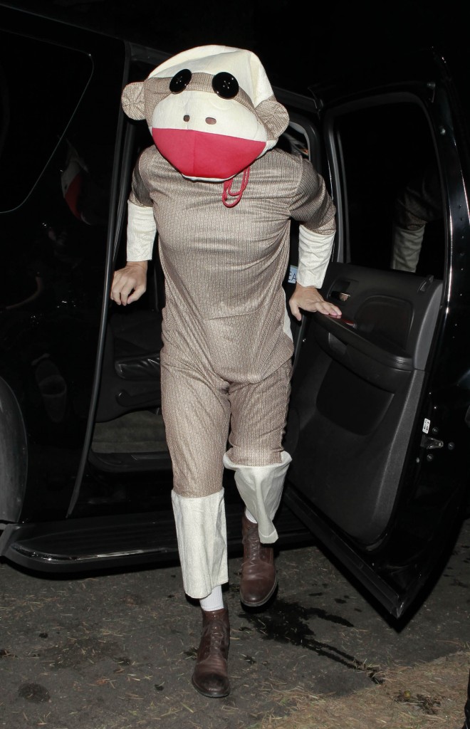 En apa som gillar banan 31 oktober, 2012 av kandisbloggen Halloween är igång och kändisarna klär ut sig precis som oss. Sacha Baron Cohen har valt att köra heldräkt. Men märker ni något konstigt?
