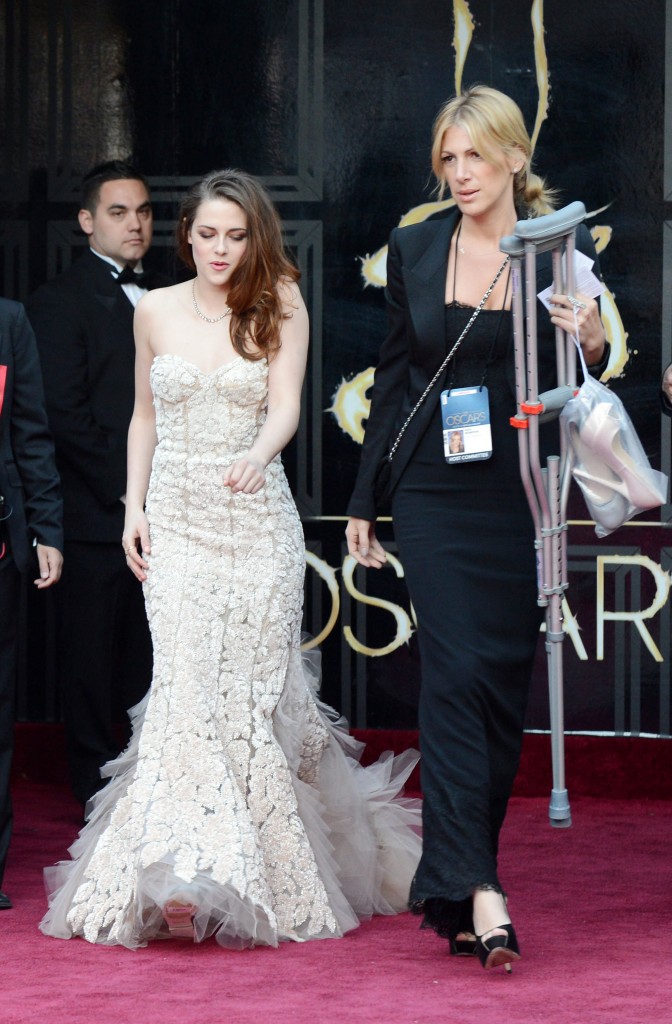Kristen Stewart dök upp med en lite oväntad accessoar under nattens Oscarsgala. Nämligen ett par kryckor!