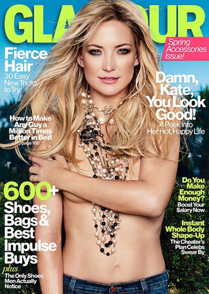 Vackra Kate Hudson pryder senaste numret av Glamour – i bar överkropp! Skådespelerskan har kastat BH:n till förmån för ett halsband i storleken större.