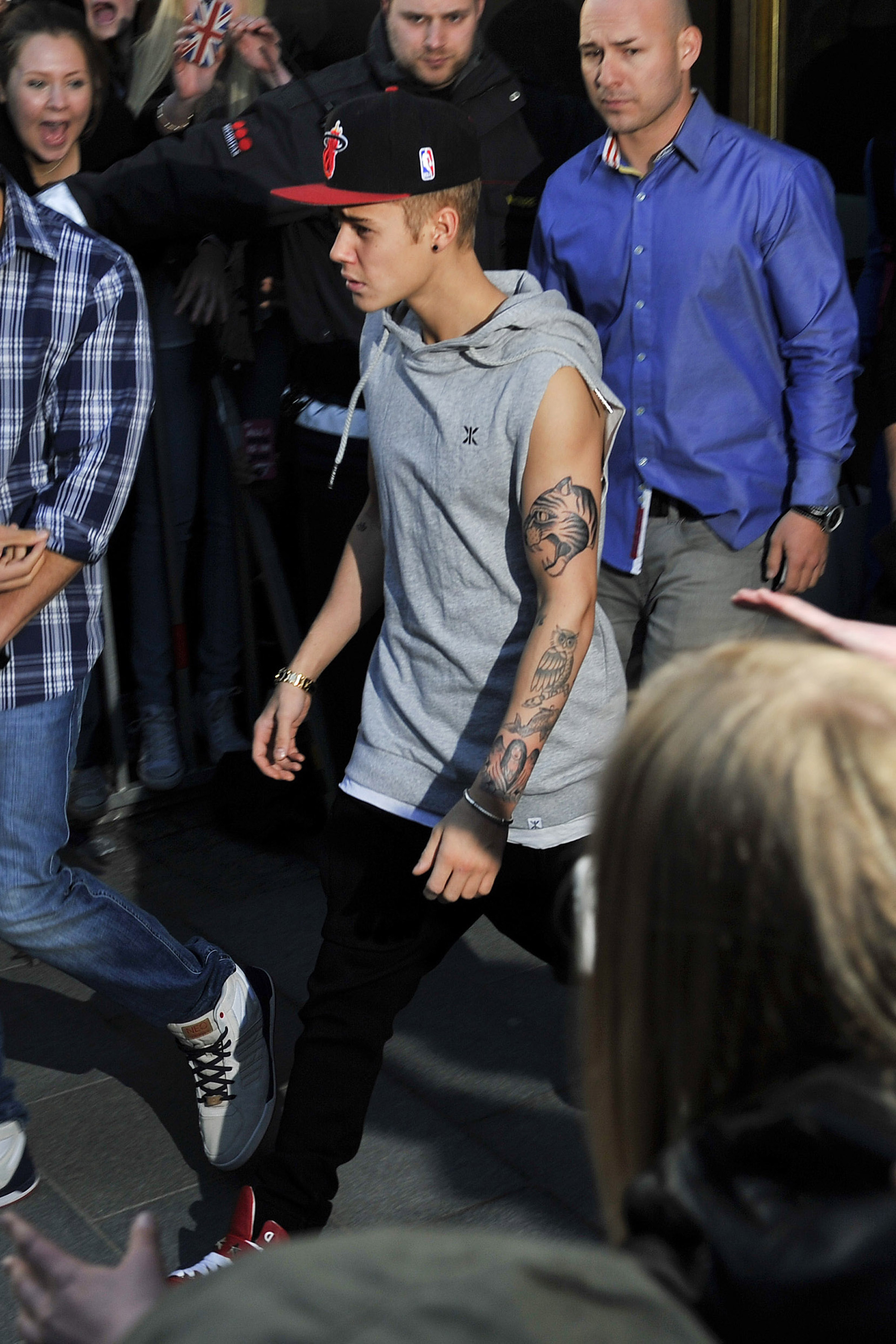 Biebers svenska tatuering 24 april, 2013 av kandisbloggen Igår fick vi se Justin Biebers nya tatuering när han lämnade Grand Hotel. Tydligen hade Biebers Crew kallat in en tatuerare till hans hotellrum för att där dekorera hans arm.