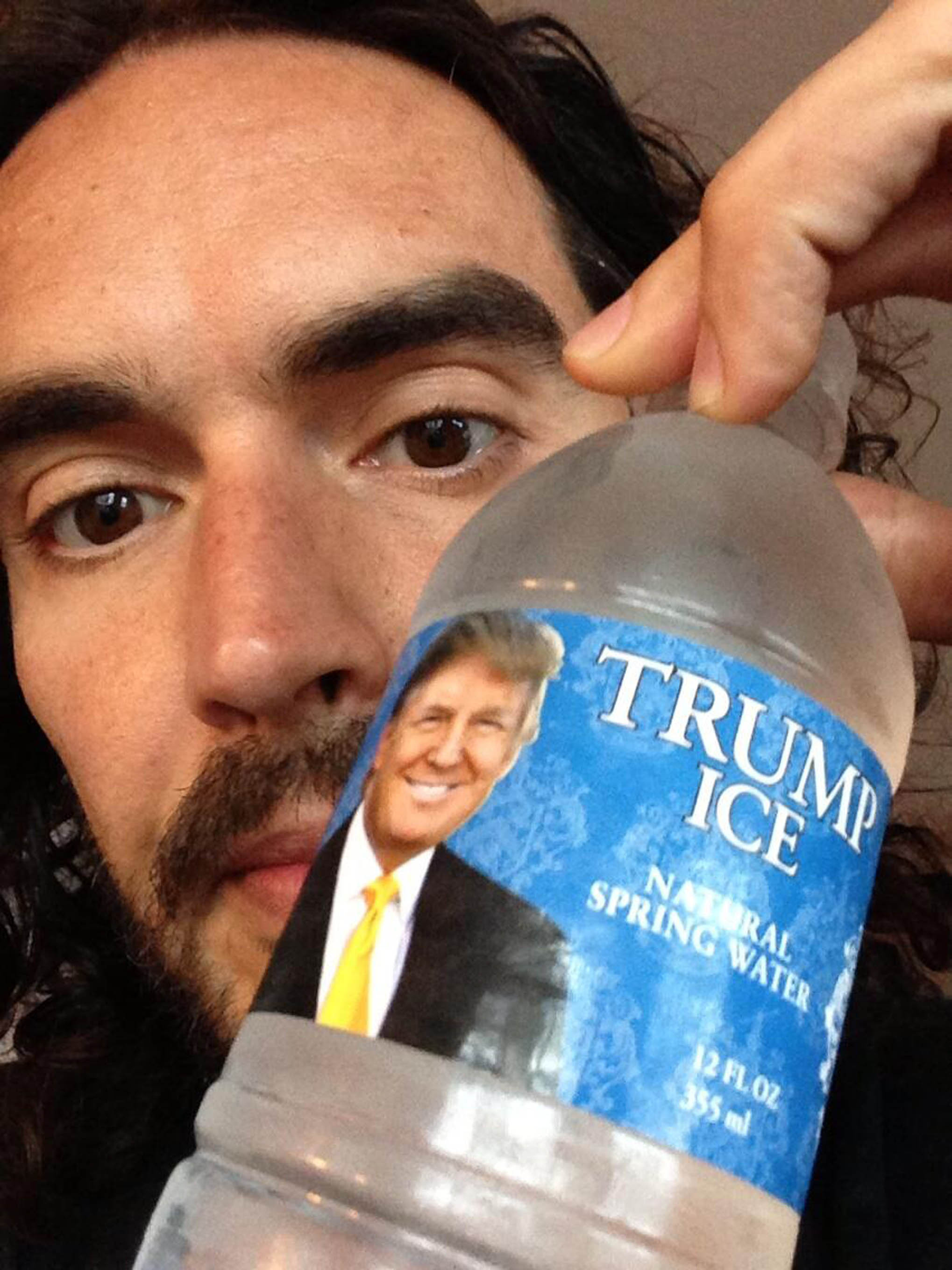 Russell Brand twittrade ut en bild på när han dricker Donald Trump… Nåja, nästan i alla fall.