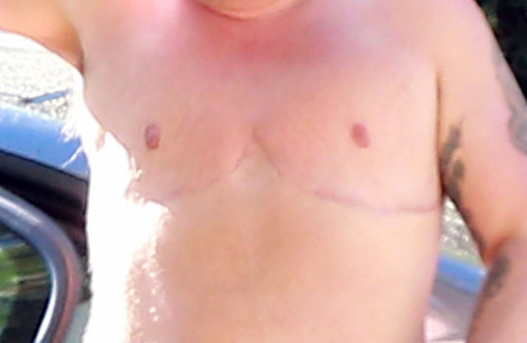 Ärren från Chaz operation 16 juli, 2013 av kandisbloggen Chers unge Chaz Bono gick i mitten av 2008 igenom ett könsbyte från kvinna till man, vilket kan skymtas på dessa toplessbilder. Ärren från bröstborttagningen syns fortfarande. Bild från celebrities.ninemsn.com.au Vad har ni att säga om könsbytet?