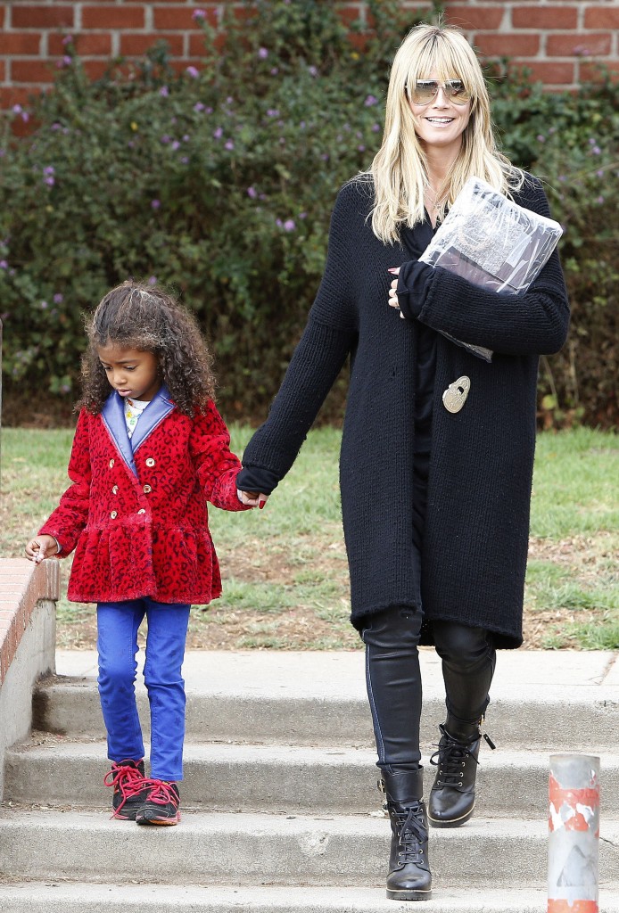 Även Heidi Klum var ute i solen och spatserade. Här med dottern Lou.