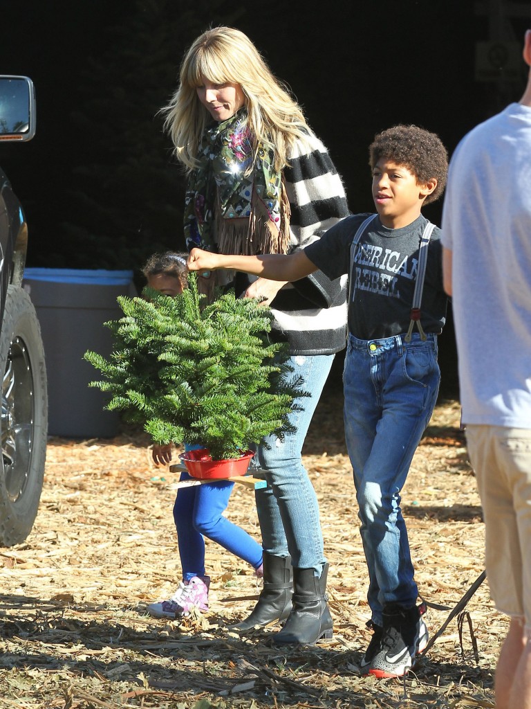 Heidi Klum gör det enklare för sig och köpen istället en gran. Och hur bedårande är inte hennes son i dessa hängslen?