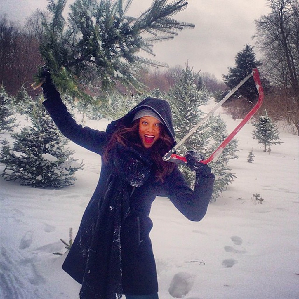 Kläder i all ära men man får inte glömma den viktigaste juldetaljen – julgranen! Tyra Banks bestämde sig för att hugga ner sin egna.