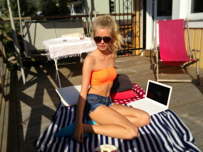 Jag just nu, det är ju helt sjukt hur varmt och skönt det är ute! Rena tropiska värmen, suttit såhär sen klockan tre skulle jag tro. Så här får det gärna fortsätta hela sommaren och speciellt till studenten!