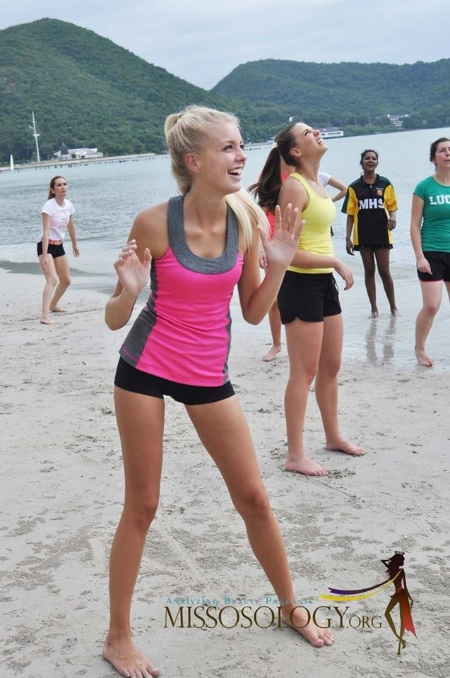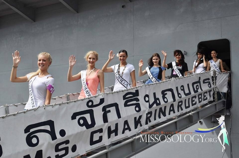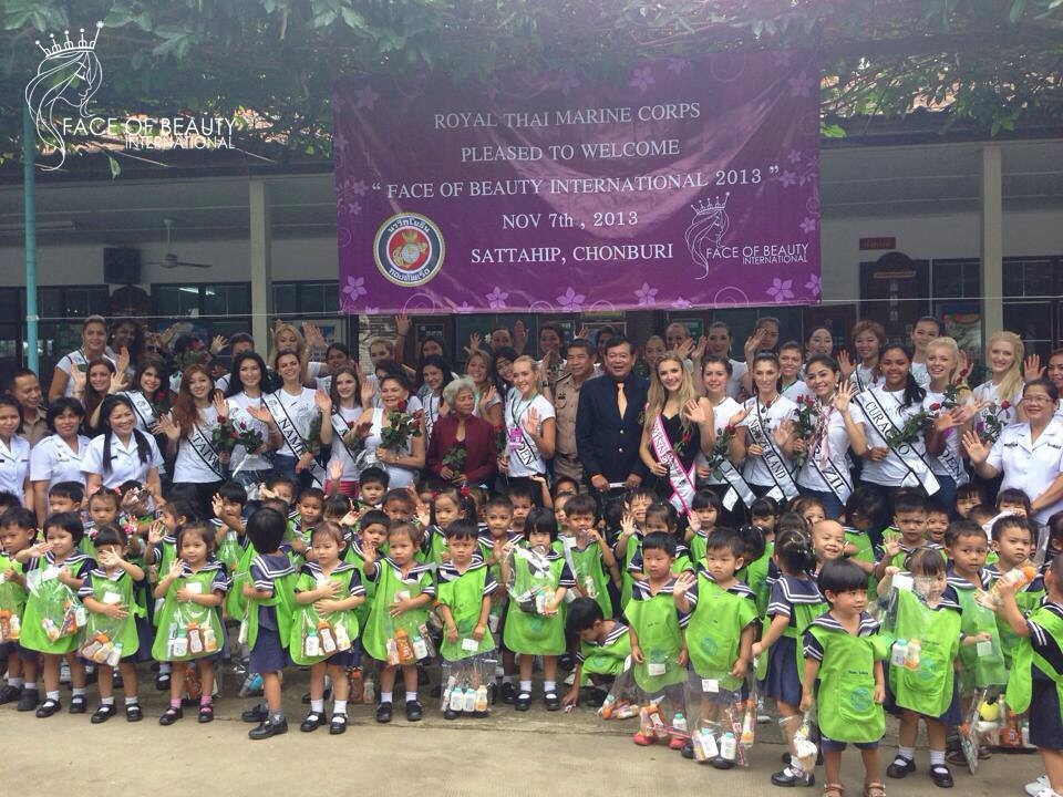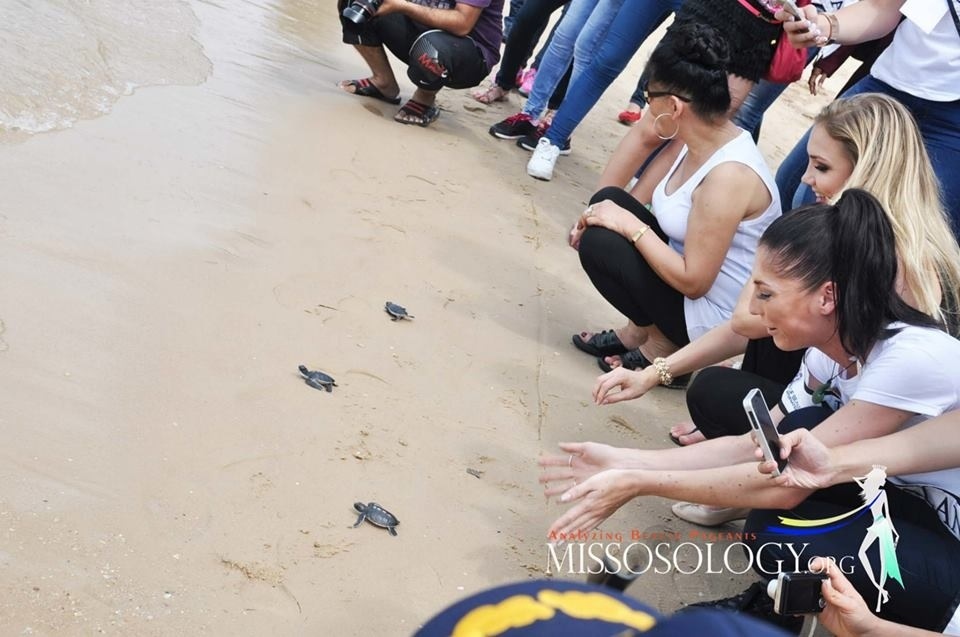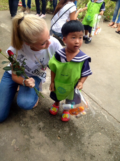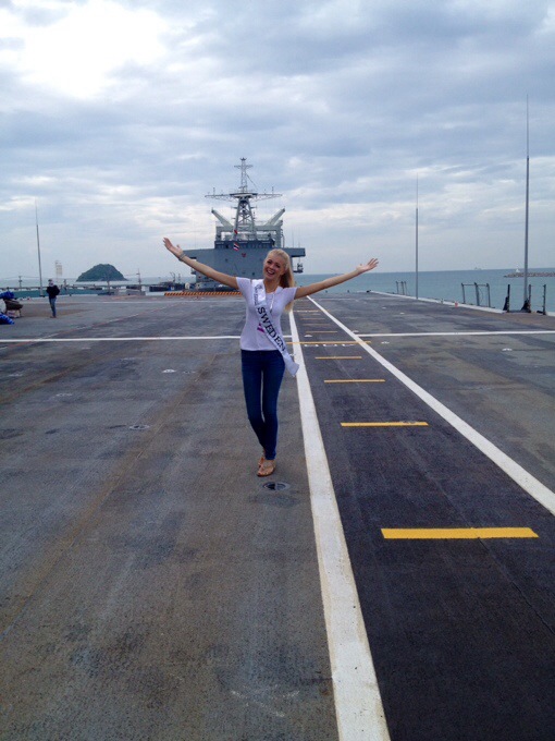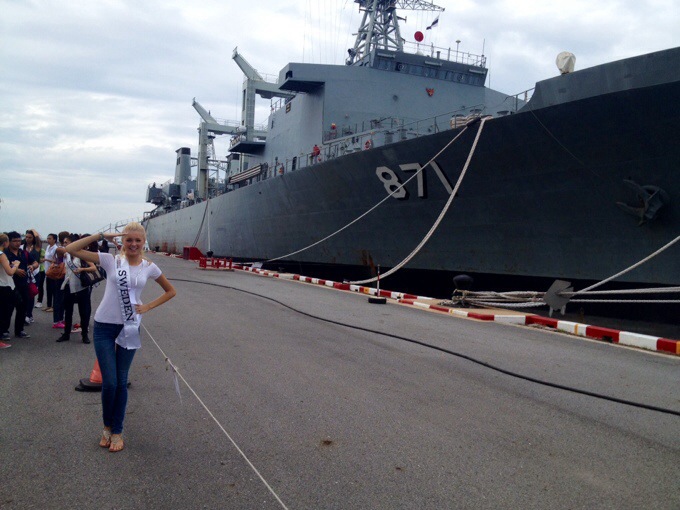 Dag 5 var nog en av de mest intensiva dagarna hittills. Dagen började med att vi åkte till Thailändska flottan och militärbasen. Vi var den första skönhetstävlingen som beslöt thailändska flottan, så vi var direktsända på tv! Efter det åkte vi till ett ”rescue center” som tar hand baby sköldpaddor tills de blir tillräckligt gamla för att klara sig själva. Jag och 14 tjejer till vart utvalda för att släppa ut varsin sköldpadda till det fria! Åh det var en riktigt söt syn, de är ju så pytteamå! Det mest känslosamma var nog när vi besökte en förskola med barn som förlorat sina föräldrar i krig. Det var mitt första välgörenhetsarbete och det kändes riktigt bra. Speciellt när man såg hur lyckliga barnen blev av sina presenter! Sist men inte minst så var det SPORTS! Det roliga där var att vi hade militärer som stod på strandkanten för att plocka upp våra bollar haha!