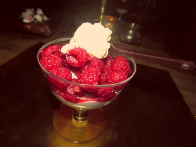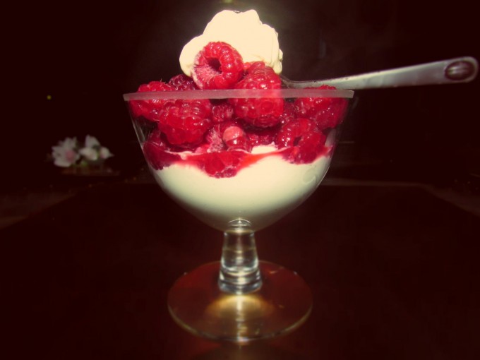 Raspberries 12 feb 2014 av Kristina Just Hallon med vispgrädde blandat med grekisk yoghurt och en chokladsked! Mums, lillördag it is.