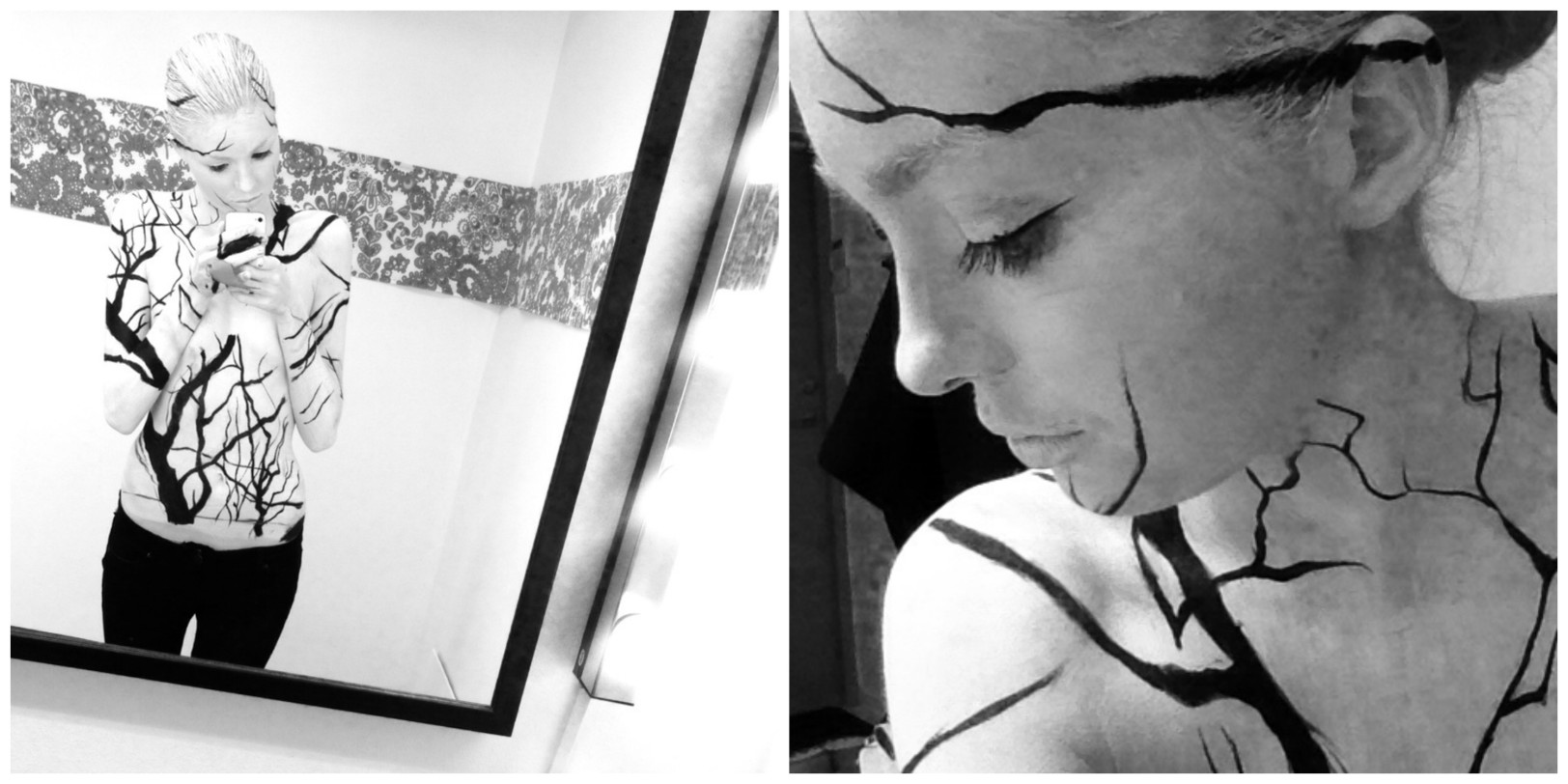 Några bilder jag tog idag under plåtningen. Vet inte om jag borde skriva plåtning för den tog kanske 20 min, det var självaste målandet som tog tid. Kul var det iallafall , intressant att de hur snabbt en konstnär kan skapa något och på en kropp! Det enda som är lite jobbigt är att man måste stå upp länge, även om jag är van efter alla tävlingar..så är jag inte van att stå i konstiga positioner haha.