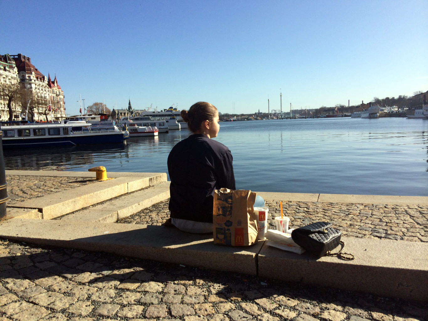 Ännu en dag spenderad ute i solen, den här gången med Elin som äntligen efter en månad får äta mat efter sin operation. Så det firade vi med att äta donken, det är lite vår grej att gå dit haha. Fast jag var lite otrogen och köpte från Max. Vi satt och åt vår älskade skräpmat på kajen vid Dramaten, var verkligen hur skönt som helst och varmt! Sedan blev det även en sväng förbi Espresso house + 7eleven för lite fika haha, vi firade hårt 😉