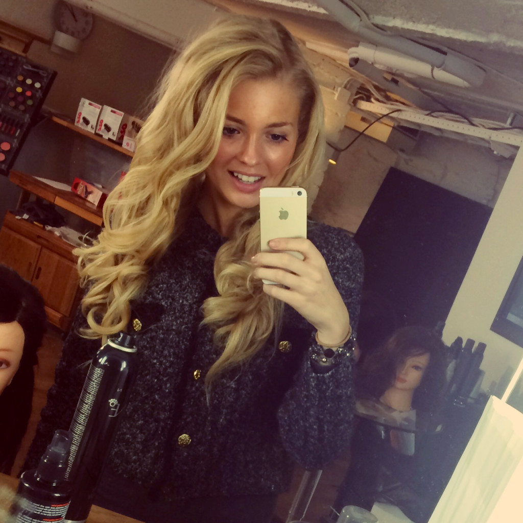 3 snabba selfies från dagens jobb, resultatet får ni se senare! Jini tränade på att göra bruduppsätnningar i mitt hår idag, inför en stor fotografering som vi ska göra i April! Nu är jag på väg hem för att byta om inför tjejkväll och utgång! Behöver inte fixa mig inför kvällen iaf, vilket känns skönt att ha gjort 😉