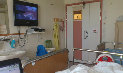 Just nu ligger Haylie och sover i sin säng, jag sitter och bloggar på eget nätverk och dricker kallt kaffe. Det är lite så det är på sjukhus, men tack och lov så är personalen helt fantastisk. Rummet är så mycket standard som man kan förvänta sig men vi är ju inte här för att bo flott heller.