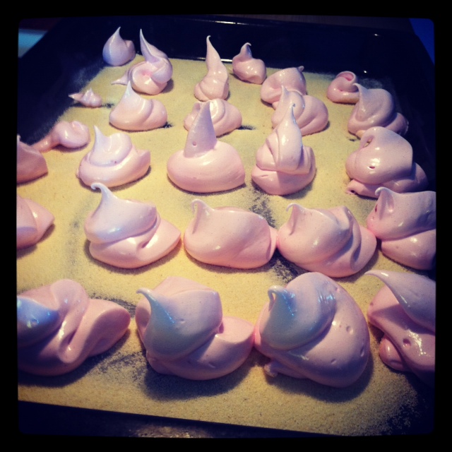 Idag bakar vovvarna och jag rosa maränger. De ska bli en present till någon…:-) Första gånger jag ger mig på detta, so far so good!
