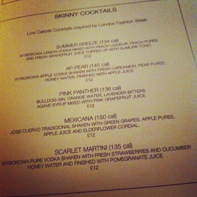 Kl 12 ska jag på en deep tissue massage, innan det har jag tänkt hinna ner och träna lite. Sen ska jag strosa på stan lite, kanske shoppa och äta lunch någonstans. Ska va lite turistig och åka till Picadilly Circus har jag tänkt.  Igår drack vi en drink i hotellbaren först här på Sanderson. Efter jobbat i spritbranschen har jag blivit skadat. Går alltid igenom alla spritlistor och drinkmenyer vart jag än är. Love it! Jag drack en Pink Panther. Denv ar sådär…Ikväll ska jag ta en AP-Pear!