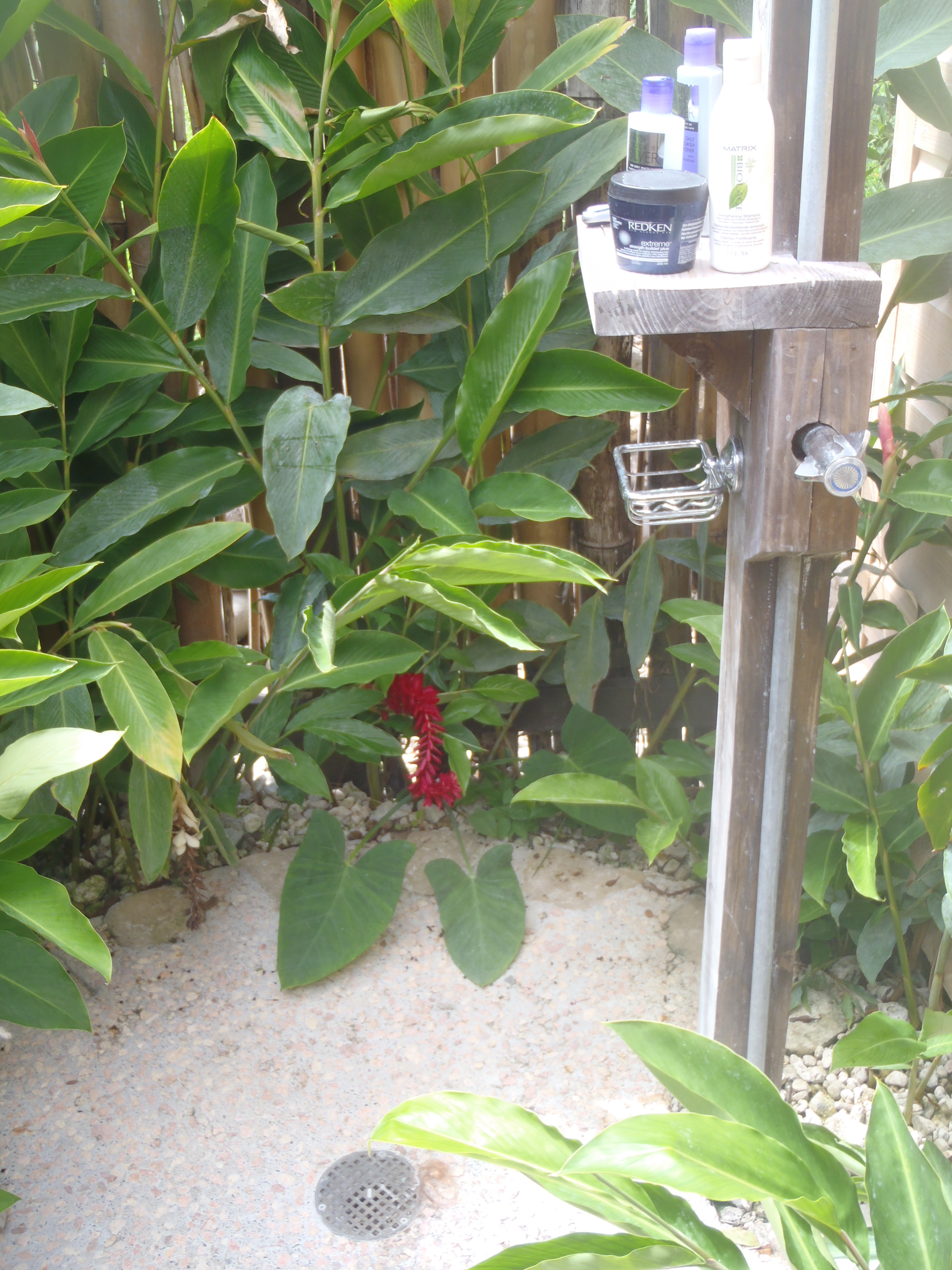 Visst är det underbart att duscha utomhus på sommaren! I villan jag bor i nu finns det dusch utomhus och badkar inomhus. Perfekt!