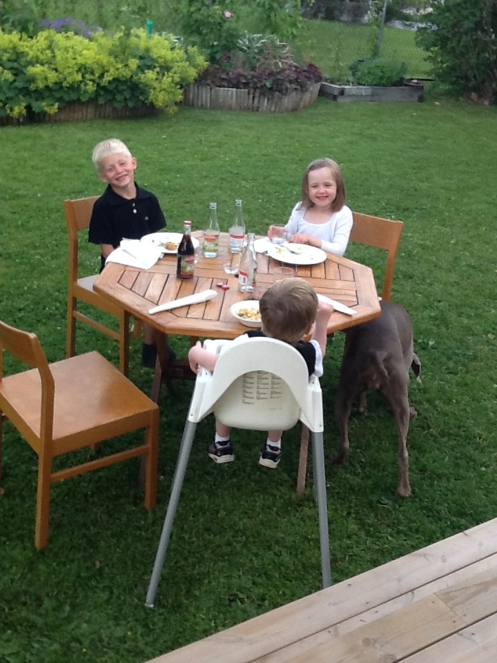 Just nu hemkommen från syster Annas hus. Som vanligt god mat!!! 6 olika sorters pajer, en stor sallad och en god parmesan/vitlöksås. Jag har ätit för 3 personer tror jag! Lite hemmagjord jordgubbstårta på det, sedan ostbågar och några gindrinkar!