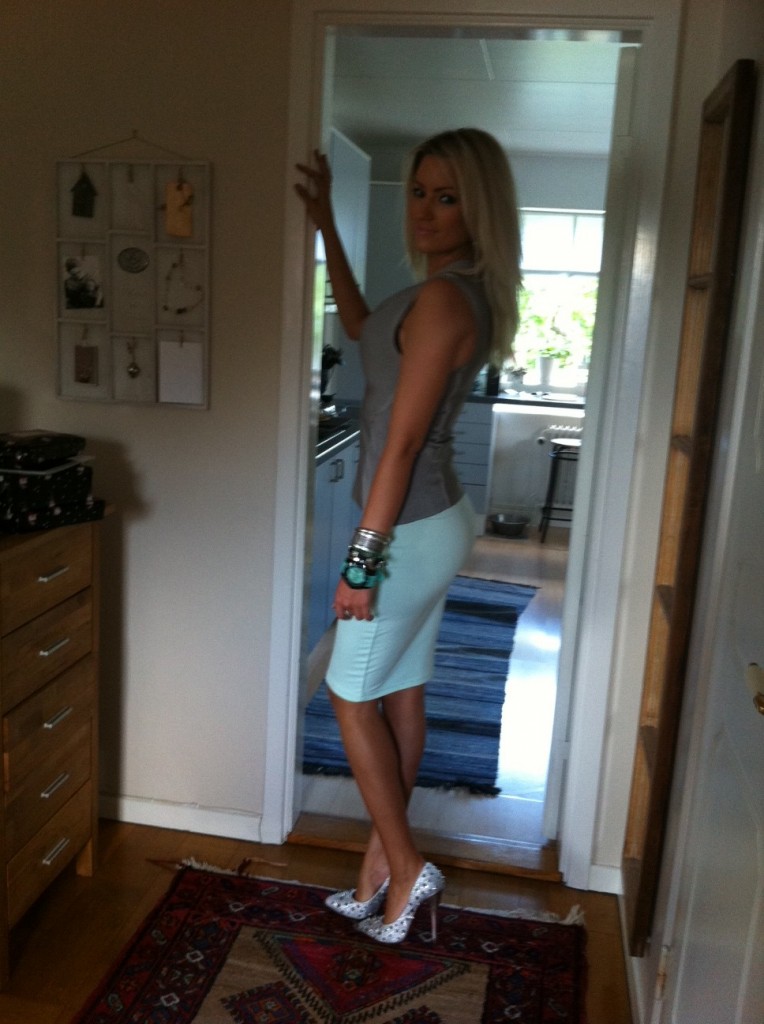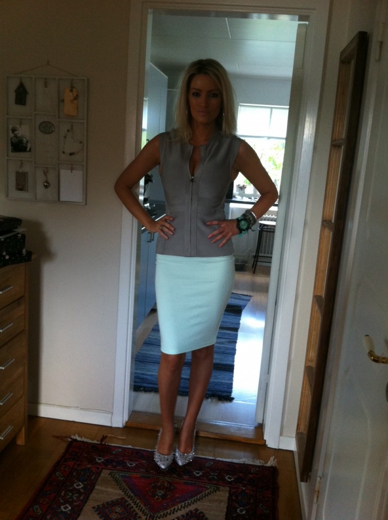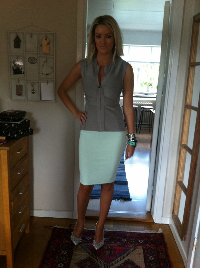 Min outfit ikväll: Skor Christian Louboutin kjol H&M, väst Herve Leger, smycken Diddi, klocka Kyboe
