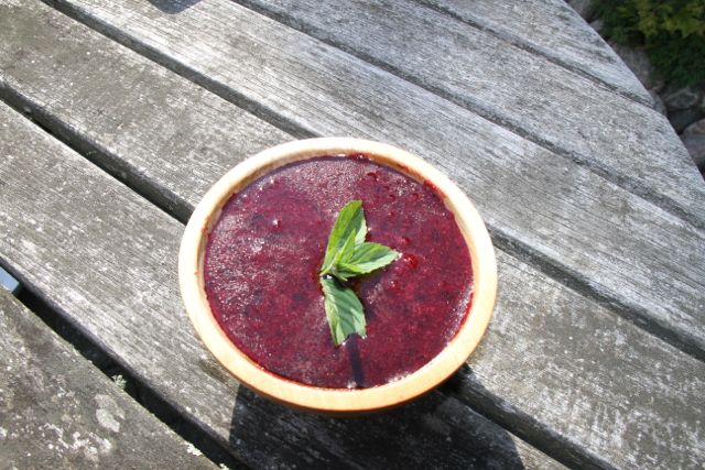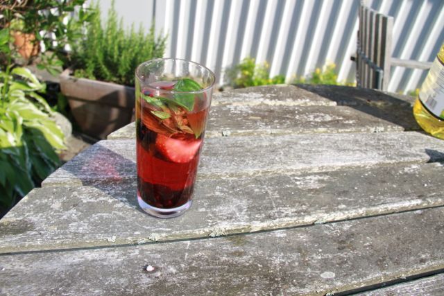 Resten av jordgubbarna, blåbär och mynta blev en härlig sommardrink….