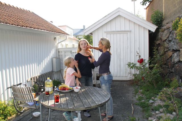 Idag hade vi tjejdag, där jag lärde min dotter och bonus dotter att göra härliga sommarscrubs! Vi gjorde två ”ätbara” med jordgubbar och blåbär – och en saltscrub med mynta, rosenblad och lavendelolja. En kul sysselsättning, om det inte är badväder!