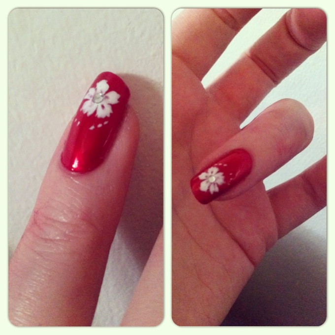 Dagens naglar! Det var lite pilligt att få rätsida på blomman på båda nävarna haha, att måla högerhanden är inte det lättaste.. Men det gick tillslut! 🙂 detta är vänster ringfinger, dock.. Hehe.
