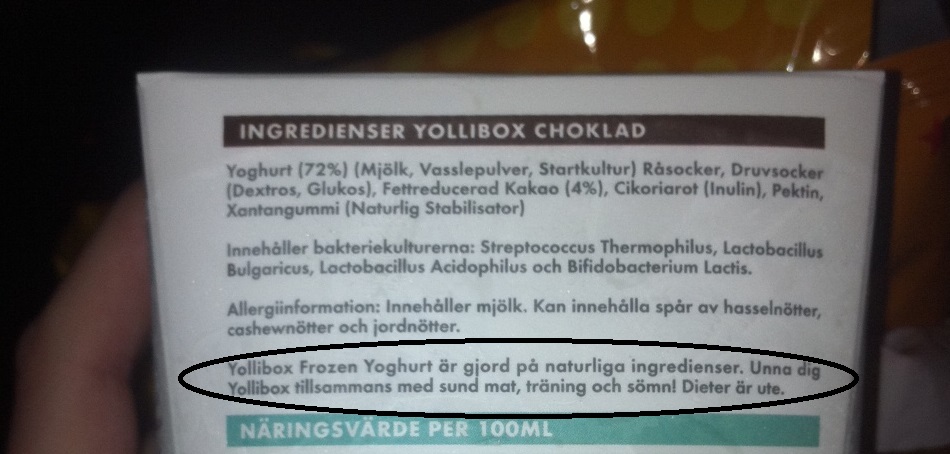 ”Dieter är ute” 30 oktober 201329 oktober 2013 av lindapatricia Jag premiär-köpte en Yollibox (Frozen yoghurt) igår. Såhär står det på den: Haha! PUSS då. ♥ Har ni provat?
