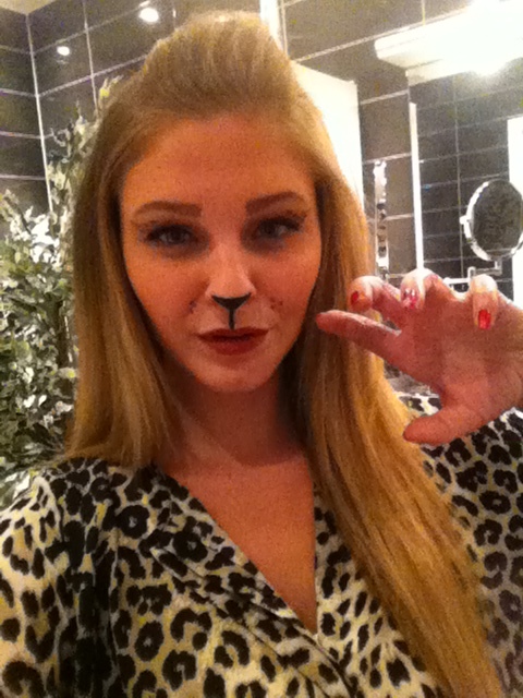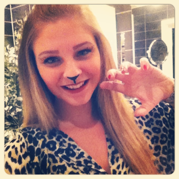 Väl där inne slog det mig att jag ju faktiskt var helt ensam på en nattklubb haha! Men hade jag väl kommit in (och nu med en drink att dricka upp) så kollade jag runt lite efter något känt ansikte. Efter ett tag dök det upp en killkompis och den känslan går nog inte att beskriva haha, blev så glad. Gick fram och började dansa med honom som tog emot mig med öppna armar, sa att han efter ett tag var tvungen att springa på toa, och då passade jag på att gå in på tjejtoan jag med och ta bort leopard-sminkningen (kletade bara ut det på näsan helatiden ändå, så orkade inte mer haha).