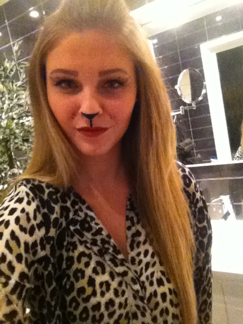 haha, lycklig leopard! Fick tyvärr ingen rättvis bild på alla detaljer, men hade målat leopardmönster på ögonen också i alla fall. Fick en frågan om det var med hjälp av ”klistermärken” som man kan köpa, så det var tydligen bra gjort! 😉