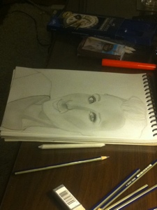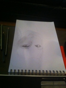 Detta är vad jag hållt på med hela dagen idag och lär hålla på med resten av kvällen med. Måste snart bli klar med den eftersom den är till min bästa vän. Det är hon på bilden och jag ville göra något särskilt till henne då hon fyller år idag! Så den måste vara klar till den 5e då vi ses nästa gång. Om jag blir nöjd, vill säga… Så kräsen! Haha. Folk tycker jag är duktig, men jag ser bara felen. Äkta konstnär, eller va? Haha..