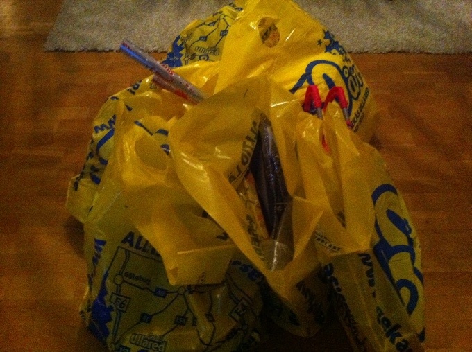 Jag fick i alla fall nästan (typ inte alls.. Eller?) köpt alla julklappar och jag troor jag känner mig nöjd och glad egentligen, lyckan kommer nog inte förrän jag gått igenom alla miljoner påsar. Tänkte göra det nu när jag har käkat! Vi hörs! 🙂