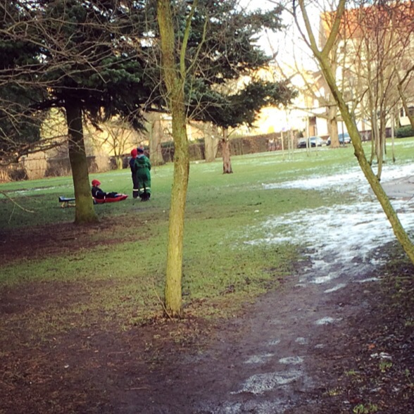 Pulka 25 januari 2015 av lindapatricia Tog en liten promenad nyss för att få lite frisk luft och sol i fejjan. Väl ute såg jag detta. Haha alltså gulledå. Här gör vi det bästa av snö-bristen i Skåne visst! Hur gulligt?