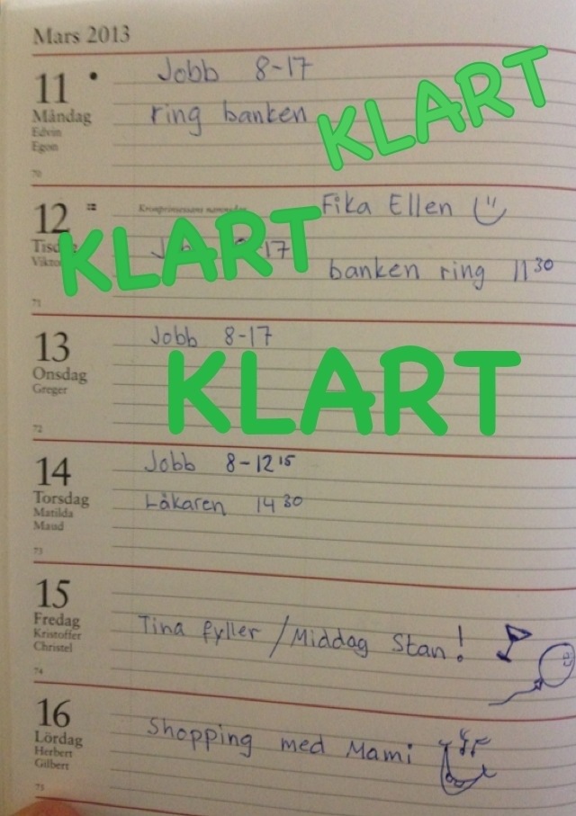 Att göra idag på listan är att jobba till 12:15 käka lite lunch, sedan åka till läkaren och min älskling ska med å hålla handen hihi 😉